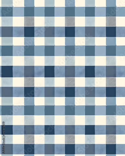 Blue plaid Seamless Hand Drawn pattern. Watercolor Gingham Window pane grid plaid Stripes pattern