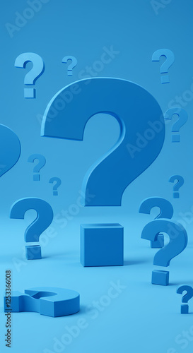 Blue Questions: 3D Question Marks Background - Solving Puzzles, Uncertainty & Curiosity in Graphic Design and Problem-Solving Concepts