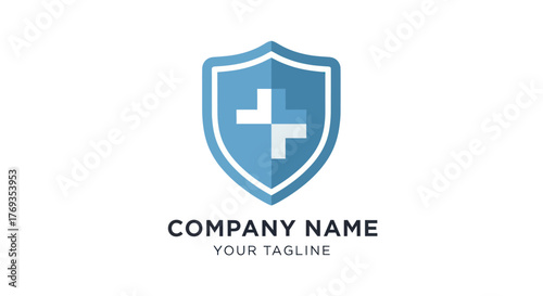 Blue Shield with White Plus Sign Logo Design.