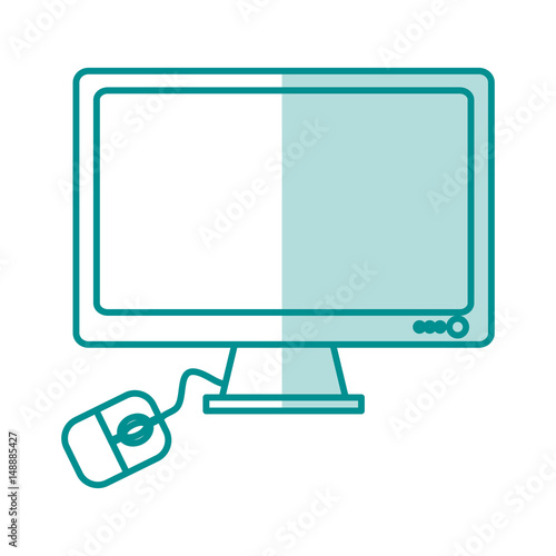 blue silhouette shading desk computer tech device with mouse vector illustration