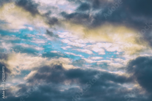 Blue sky among dark clouds