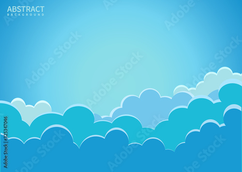 Blue sky and clouds background paper cut. Vector illustration