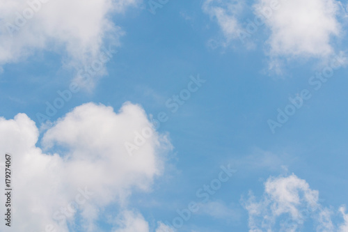 Blue sky background with tiny clouds. White fluffy clouds in the blue sky
