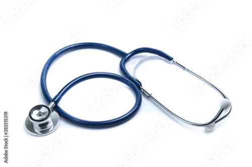 Blue stethoscope isolated on white
