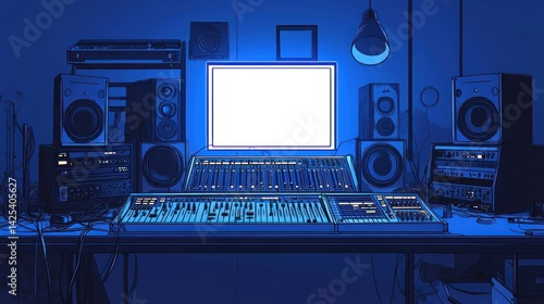Blue Studio Mixing Desk Night Recording
