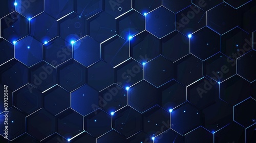 Blue technology background with hexagon pattern and glowing dots vector illustration, dark blue background