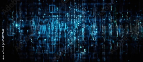 Blue tone digital binary code matrix background - 3D rendering