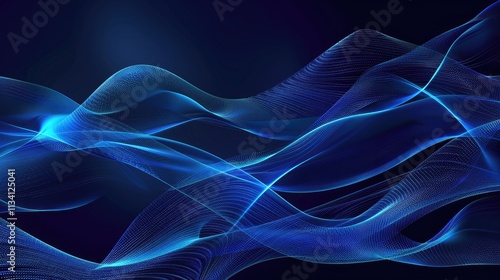 Blue wave background vector presentation design with blue waves and lines on a dark blue background. Abstract technology and digital concept background for a business card, poster or banner template