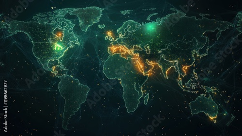 Blue-green binary map with artistic glowing effects.