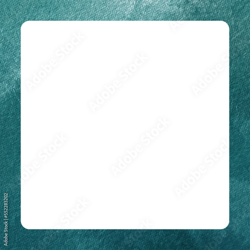 Blueish green textured grunge vector frame with white background for copy space isolated. Square shaped template for social media post, brochure, greeting card, and others.
