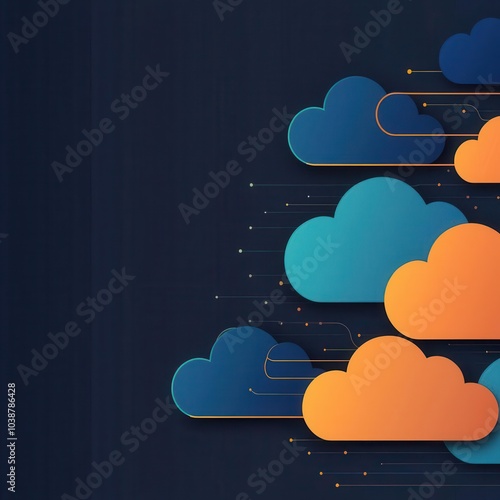 Blueprint of cloud computing nodes interlaced with a hightech datacenter, cyber architecture