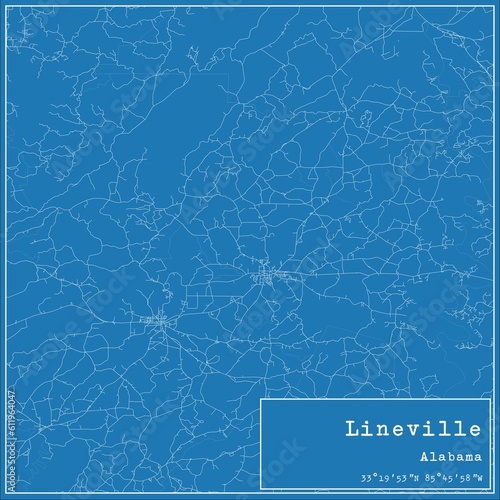 Blueprint US city map of Lineville, Alabama.