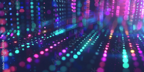blur binary data background. Concept for big data, deep machine learning, artificial intelligence. colorful data tranfer business technology background. virtualization, futuristic,banner