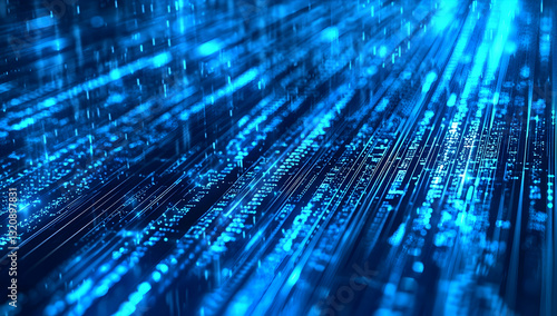 Blurred blue stripes creating a dynamic and futuristic feel in a tech backdrop, ideal for modern projects.