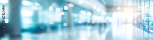 Blurred light blue background with modern business environment