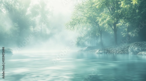 Blurred water flowing through a forest scene, with ample copy space for a peaceful visual appeal.