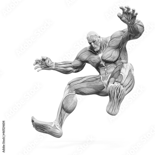 bodybuilder muscle maps is falling down in white background