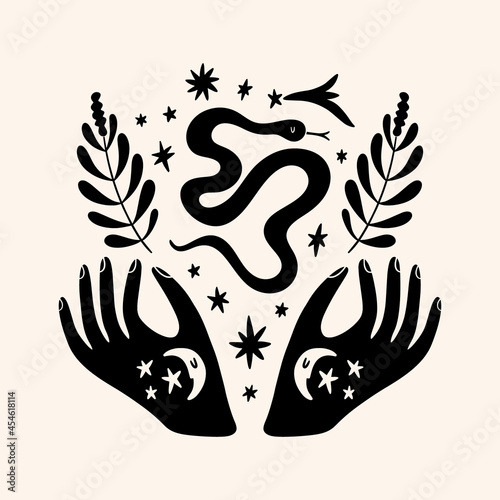 Boho snake art print, minimalist contour design.