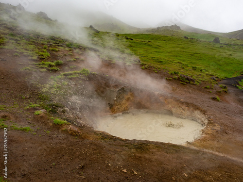 Boiling mud pool in Reykjadalur valley, Iceland