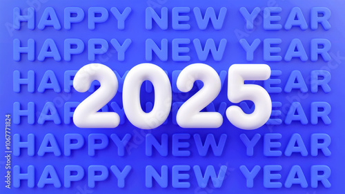 bold 2025 with blue happy new year text background