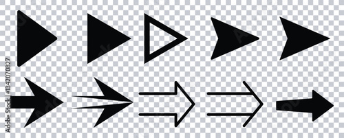 Bold Black Arrow Icons Set - Direction, Forward, Play, Navigation Vector PNG.