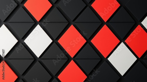 Bold geometric design in black and white with splashes of red, telling a story of passion and contrast
