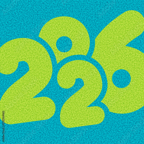 Bold green 2026 digits with a soft texture over a vibrant blue background. Modern and playful. Vector illustration.
