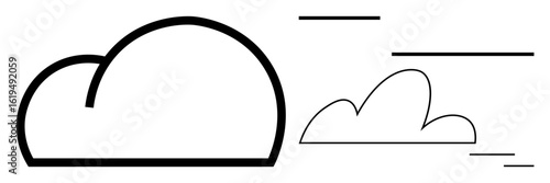 Bold outlined cloud with stylized curved lines representing wind. Minimalist aesthetics. Ideal for weather forecast, nature, climate, environment, wind, speed technology. Simple flat metaphor