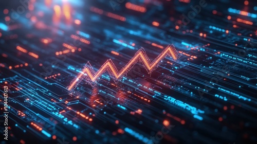 Bold Upward Arrow with Circuits Background