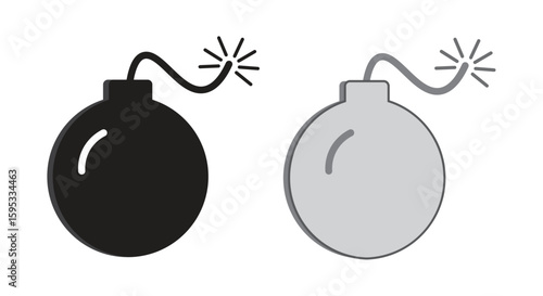 bomb icon set, solid and outline style