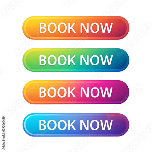 Book now button collection isolated transparent background.