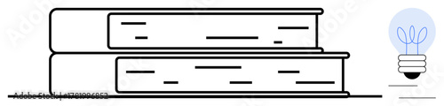 Books stacked neatly beside light bulb glowing with tiny leaves, symbolizing growth and innovation. Ideal for knowledge, education, creativity, sustainability, learning, growth mindset, simple flat