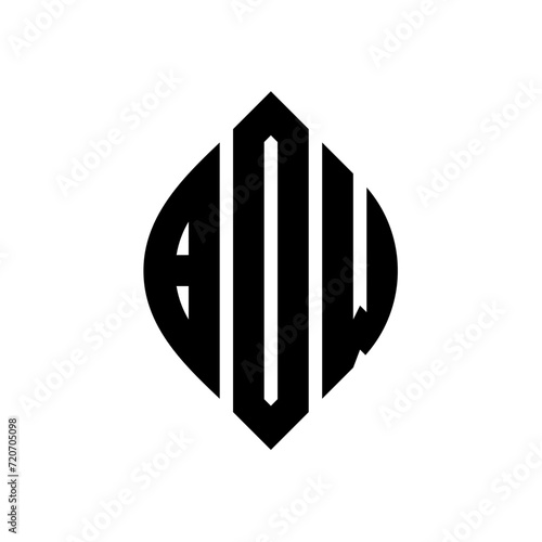 BOW circle letter logo design with circle and ellipse shape. BOW ellipse letters with typographic style. The three initials form a circle logo. BOW Circle Emblem Abstract Monogram Letter Mark Vector.