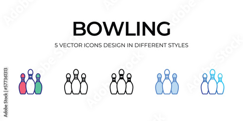 bowling Icon Design in Five style with Editable Stroke. Line, Solid, Flat Line, Duo Tone Color, and Color Gradient Line. Suitable for Web Page, Mobile App, UI, UX and GUI design.