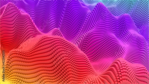 Box Pixel Voxel Colorful Waves Rectangles Landscape Wallpaper Background 3D Render