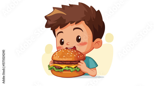 Boy Eating Burger Cartoon Vector Illustration