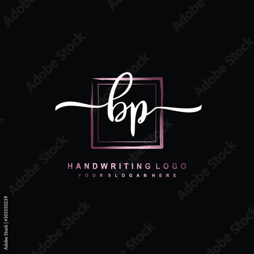 BP Initial handwriting logo design with brush box lines dark pink color gradation. handwritten logo for fashion, team, wedding, luxury logo.