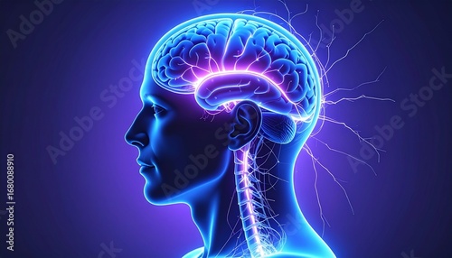 brain, thinking, idea, science, inspiration, creativity, energy, datum, nerve cell, technology, algorithm, imagination, creation, digital, concentration, brain wave, sculpture, head, face, mind, anatomy, medicine, profile, illustration