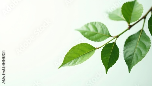 branch of leaves isolated on a bright white background with subtle gradient effect, minimalism, leaf branch, isolated