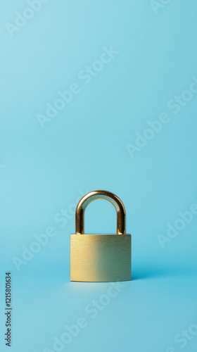 Brass Padlock on Light Blue Background: Security and Protection Concept