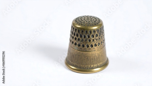 Brass Thimble on White Background