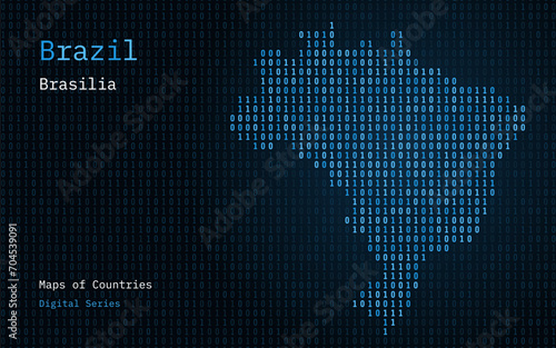 Brazil Blue Map Shown in Binary Code Pattern. TSMC. Matrix numbers, zero, one. World Countries Vector Maps. Digital Series