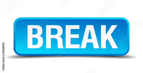 Break blue 3d realistic square isolated button