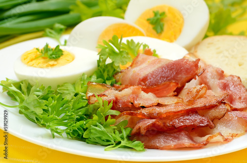 Breakfast with bacon and eggs