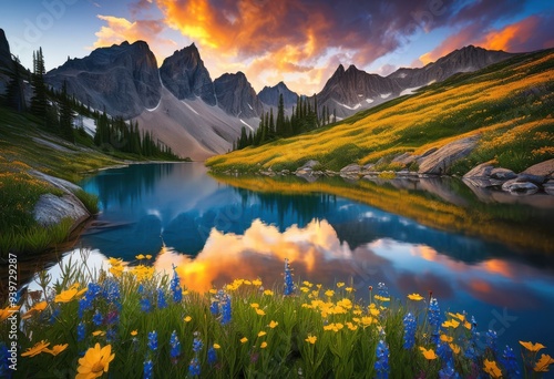 breathtaking sunrise over majestic mountain vistas highlighting dramatic contrasts color light, adventure, backdrop, beauty, blue, cliff, clouds