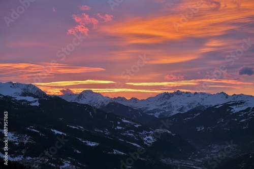 Breathtaking Sunset Over Snow-Capped Mountain Range