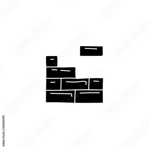 Brick build, brick wall icon in solid black flat shape glyph icon, isolated on white background