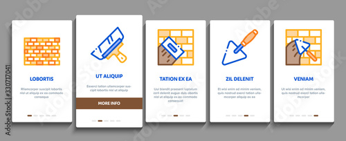 Bricklayer Industry Onboarding Mobile App Page Screen Vector. Professional Bricklayer Worker, Mason Layer Equipment For Construct Brick Wall Color Contour Illustrations