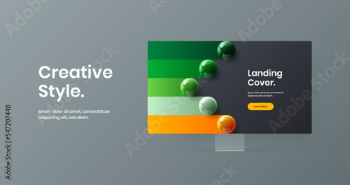 Bright banner vector design layout. Simple computer display mockup landing page illustration.