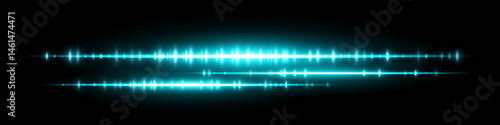 Bright blue audio waveform with dual frequency bands and glowing shine. Ideal for podcast visuals, sound signal analysis, equalizer interface or electronic music display.